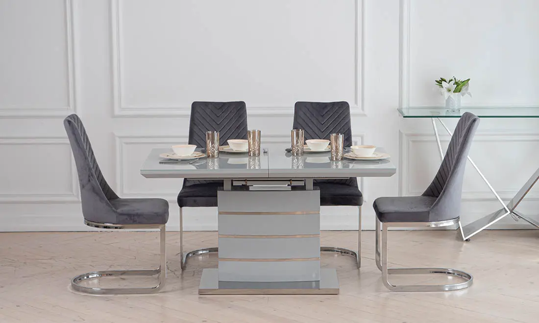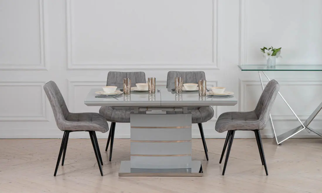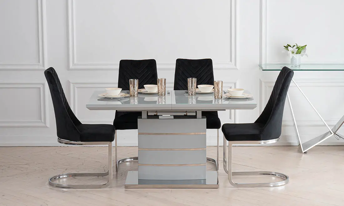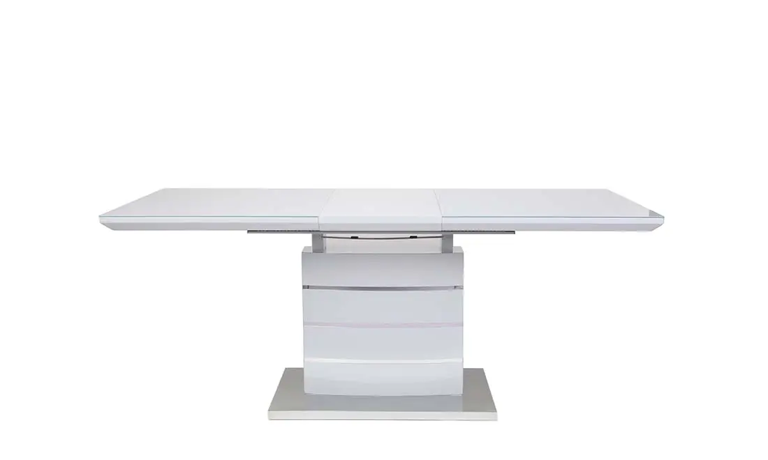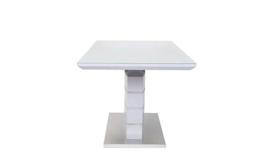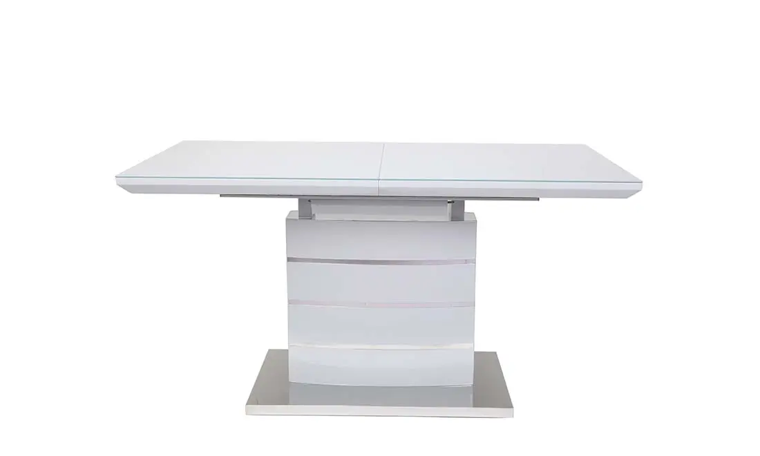 Стильний обідній стіл Скайлайн виконаний в трендовом дизайні, який підійде до більшості сучасних інтер’єрів. Прямокутна стільниця має чіткі і рівні лінії, завдяки чому ви зможете впритул його поставити до стіни, при цьому заощадити трохи вільного місця. Глянцева поверхня столу, яка відбиває світло доповнює стійка нога з хромованими вставками. Стіл Скайлайн має розкладку, із розміру 1400 мм перетворюється в 1800 мм, що дозволить розмістити від 4 до 8 персон. Розміри: 1400/1800x800x760